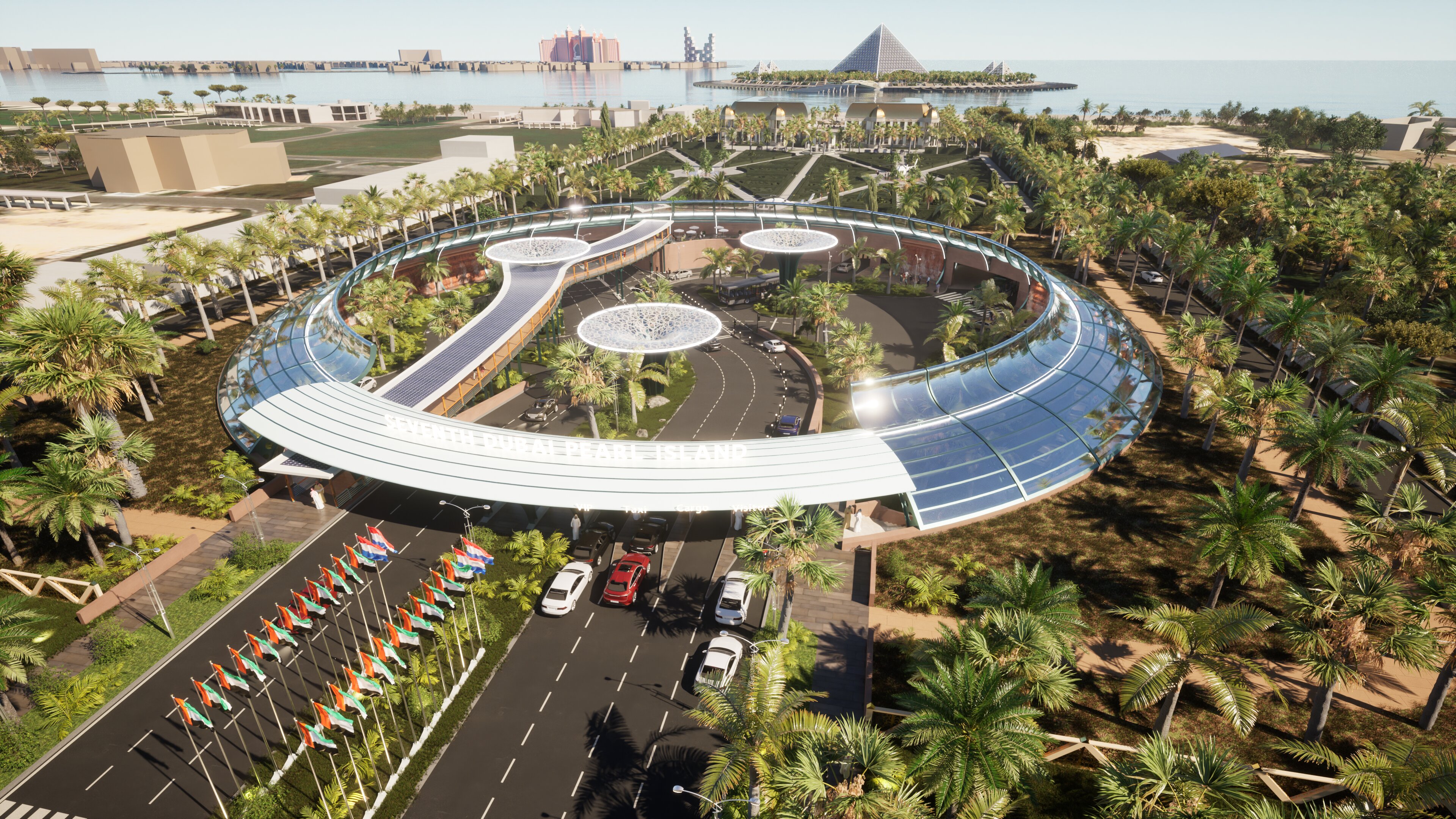 Inspired by the legendary Atlantis, SEVENTH is an iconic architectural marvel situated on a circular floating island off the coast of Dubai. The project features pyramid-shaped buildings designed to harmonize human living with the environment, embodying Hendrik's philosophy of 'The Other Way of Living.'